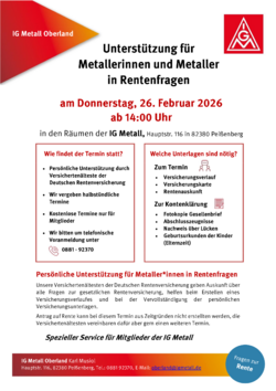 Unterstützung für Rentenfragen in den Räumen der IG Metall Geschäftsstelle Oberland in Peißenberg - Exclusiver Service für IG Metall Mitglieder