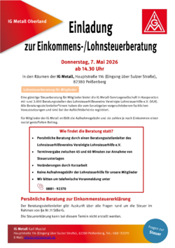 Lohnsteuerberatung in der Geschäftsstelle der IG Metall Oberland in Peißenberg - ein exclusives Angebot für IG Metall Mitglieder!